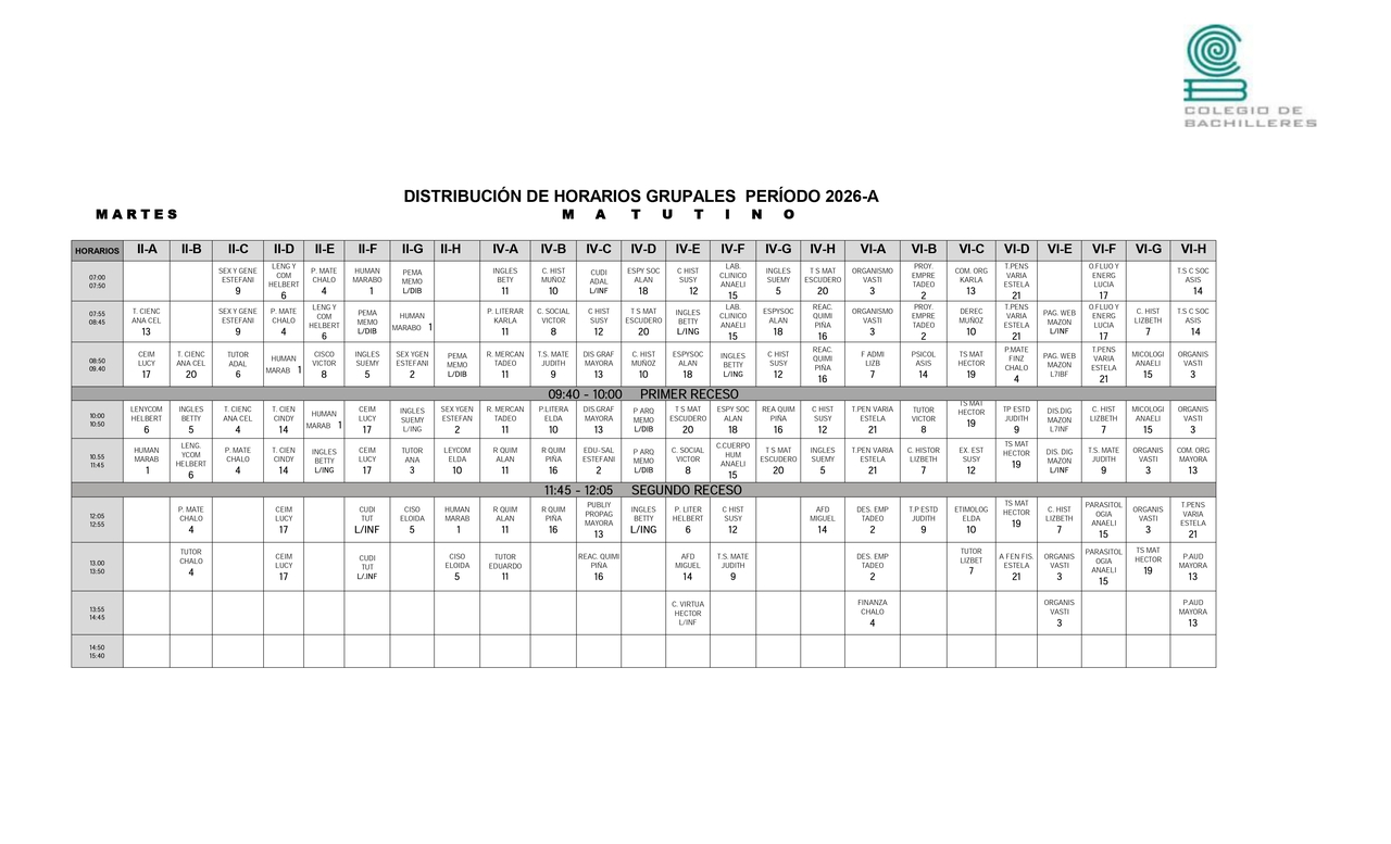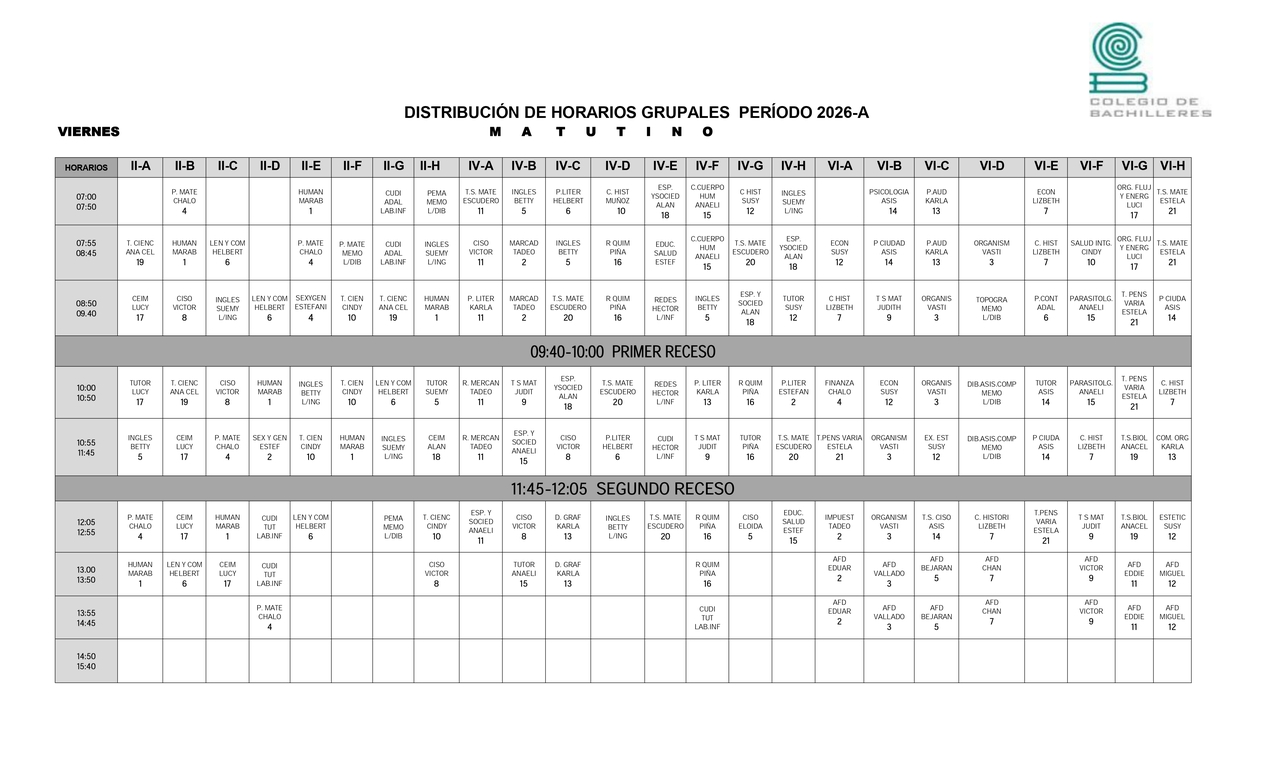 Horarios Grupales